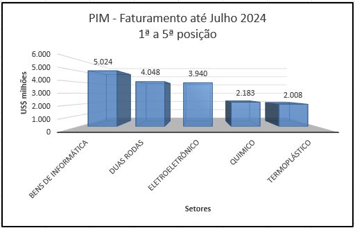 Bens de Informática (faturamento de R$ 47,07 bilhões e crescimento de 9,93%), Eletroeletrônico (faturamento de R$ 36,84 bilhões e crescimento de 11,71%) e Duas Rodas (faturamento de R$ 36,47 bilhões e crescimento de 18,32%) foram os principais segmentos do PIM no ano passado.