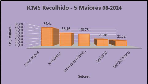 Esses três segmentos recolheram US$ 176.32 milhões, o equivalente a 62,55% do total dos valores devidos como ICMS entre janeiro e agosto deste ano.