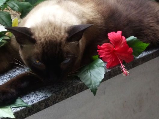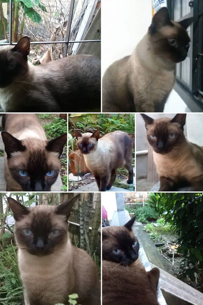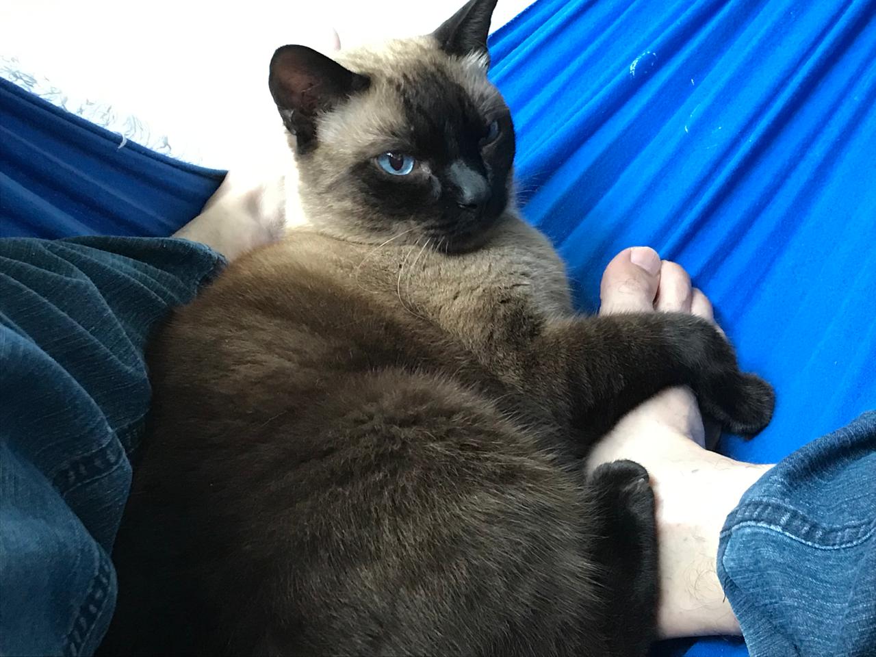 Ele nasceu de mãe siamesa, uma gatinha que apareceu por perto de casa já grávida, a qual acolhemos e que ganhou o apelido de Patinha, porque tinha algum problema em uma de suas patas.